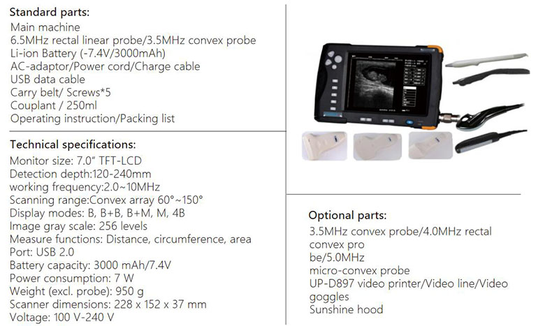 പോത്ത്, കുതിരകൾ, ആടുകൾ, പന്നികൾ, പൂച്ചകൾ, നായ്ക്കൾ എന്നിവയ്ക്കുള്ള അൾട്രാസൗണ്ട് സ്കാനർ ഉപകരണം